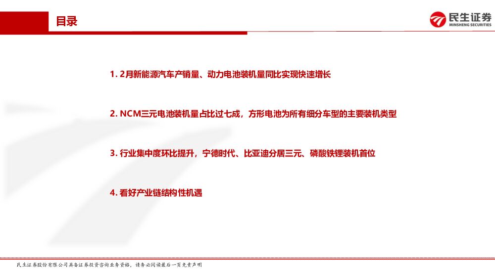 民生证券:电力设备与新能源行业动力电池月度装机专题报告:2月新能源汽车产销量、动力电池装机量同比高增长,看好产业链结构性机会.pdf