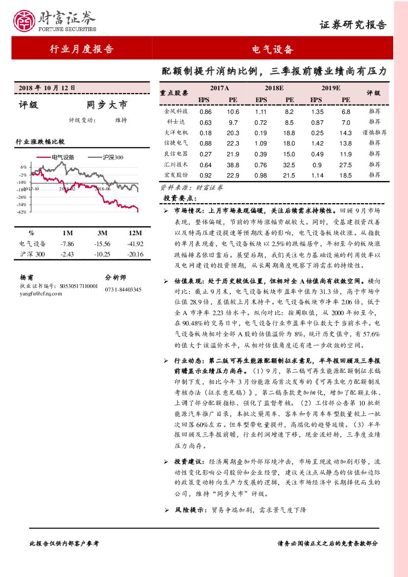 财富证券:电气设备:配额制提升消纳比例,三季报前瞻业绩尚有压力.pdf