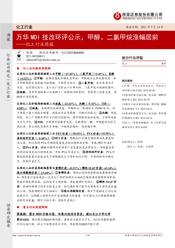 浙商证券:化工行业周报:万华MDI技改环评公示,甲醇、二氯甲烷涨幅居前.pdf