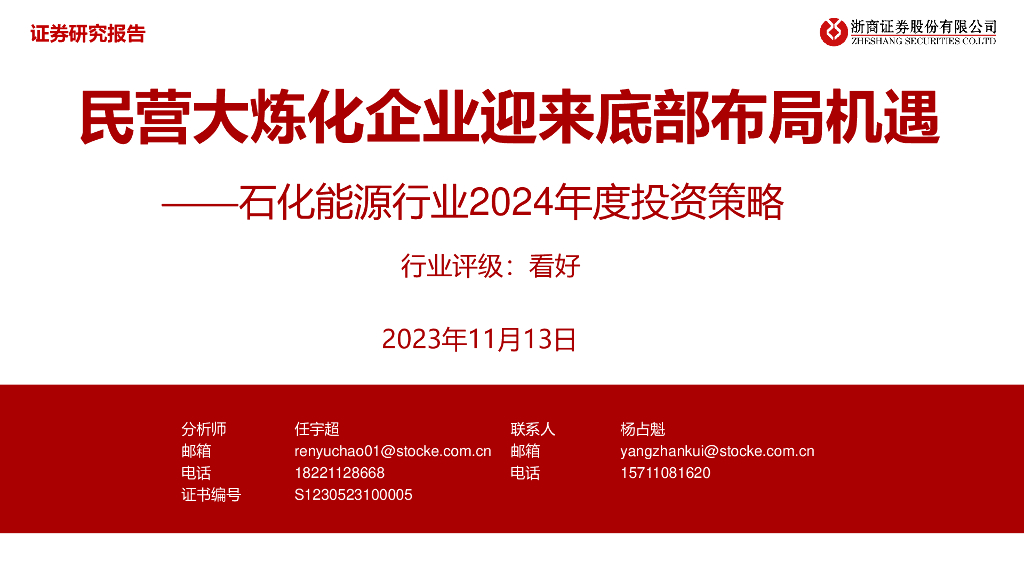 浙商证券:石化能源行业2024年度投资策略:民营大炼化企业迎来底部布局机遇.pdf