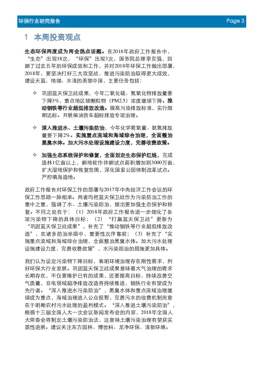 首创证券:环保行业周报:打好污染防治攻坚战,环境治理再度升级.pdf