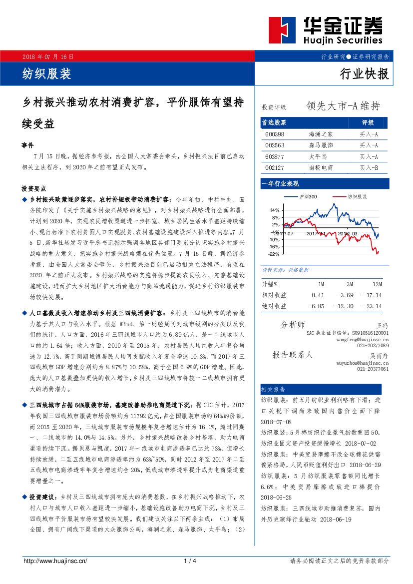 华金证券:纺织服装行业快报:乡村振兴推动农村消费扩容,平价服饰有望持续受益.pdf