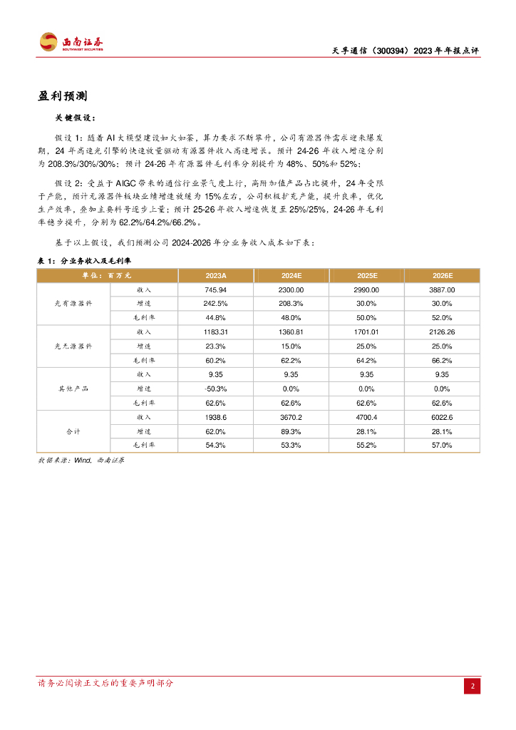 西南证券:天孚通信(300394)-2023年年报点评:业绩符合预期,高速率产品持续放量.pdf