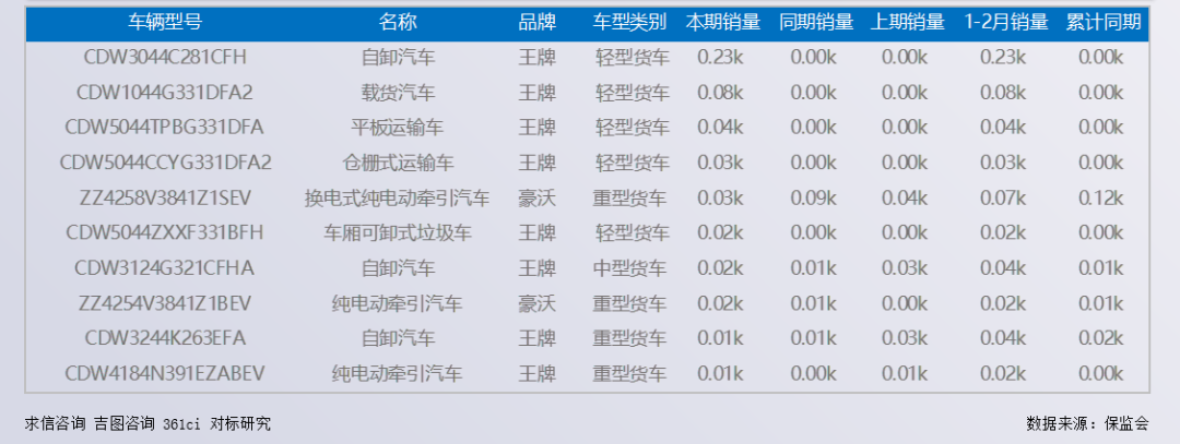 吉图咨询:中国重汽集团成都王牌商用车有限公司|国产商用车销售简报(202602期)