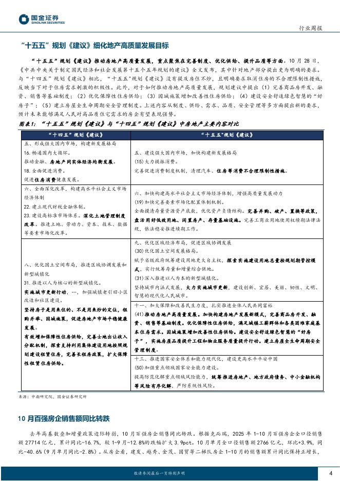 国金证券:房地产行业研究:细化地产高质量发展目标,10月百强房企销售同比转跌.pdf