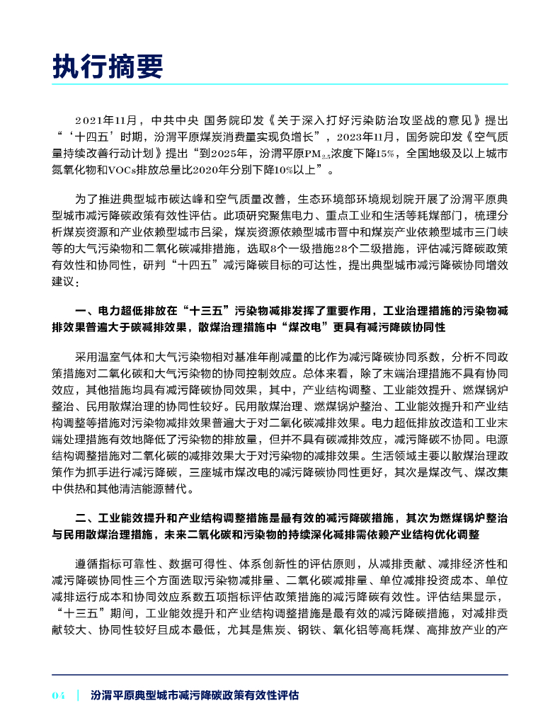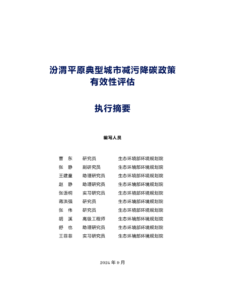 生态环境部环境规划院:2024年汾渭平原典型城市减污降碳政策有效性评估报告(摘要).pdf