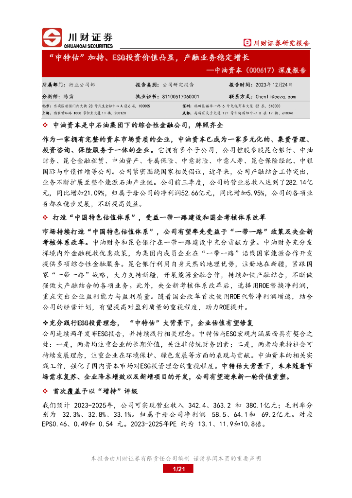 川财证券:中油资本(000617)-深度报告:“中特估”加持、ESG投资价值凸显,产融业务稳定增长.pdf
