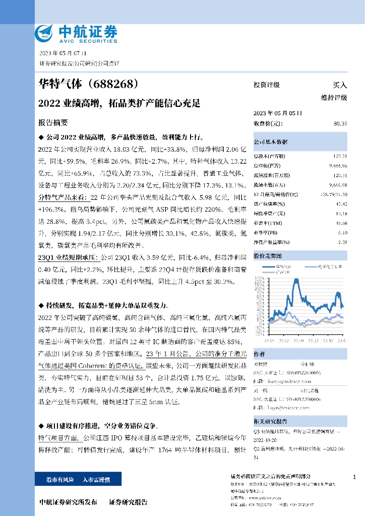 中航证券:华特气体(688268)-2022业绩高增,拓品类扩产能信心充足.pdf