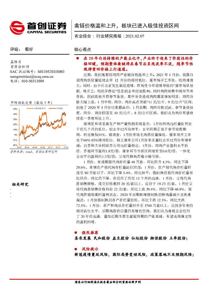 首创证券:农业综合行业研究周报:禽链价格温和上升,板块已进入极佳投资区间.pdf
