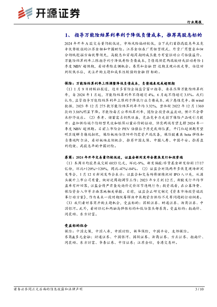 开源证券:非银金融行业周报:指导万能险结算利率降负债成本,推荐高股息标的.pdf