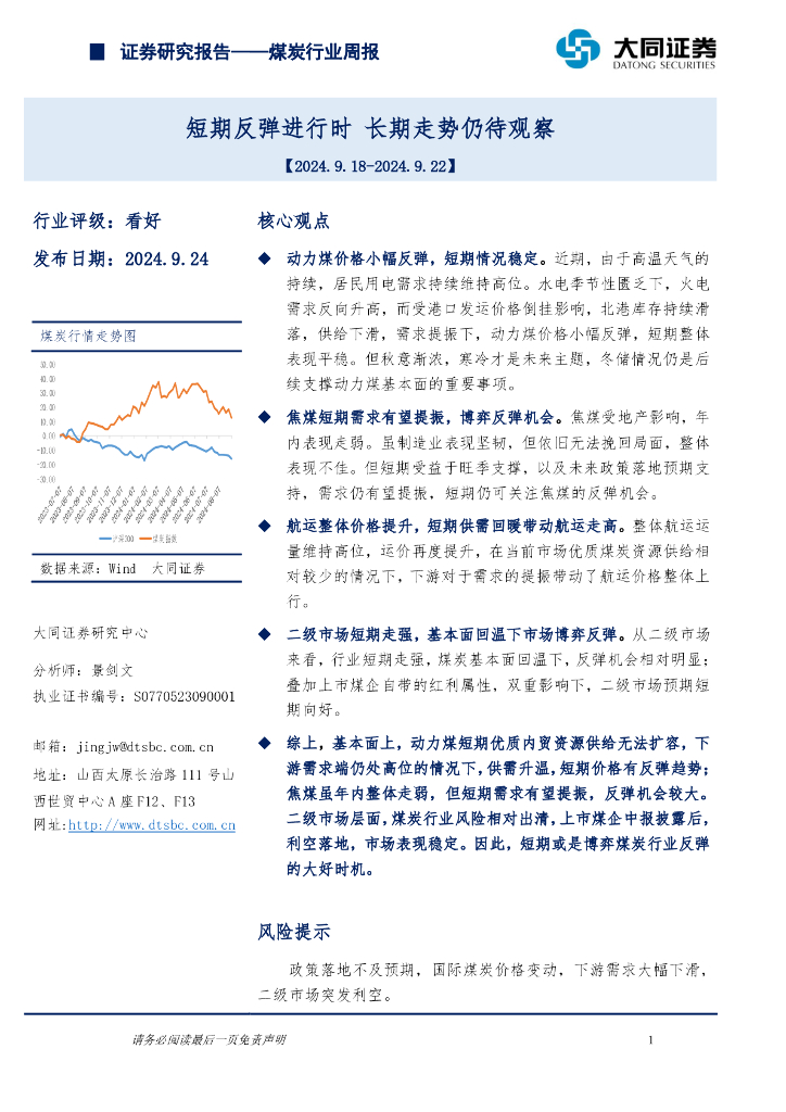 大同证券:煤炭行业周报:短期反弹进行时,长期走势仍待观察.pdf