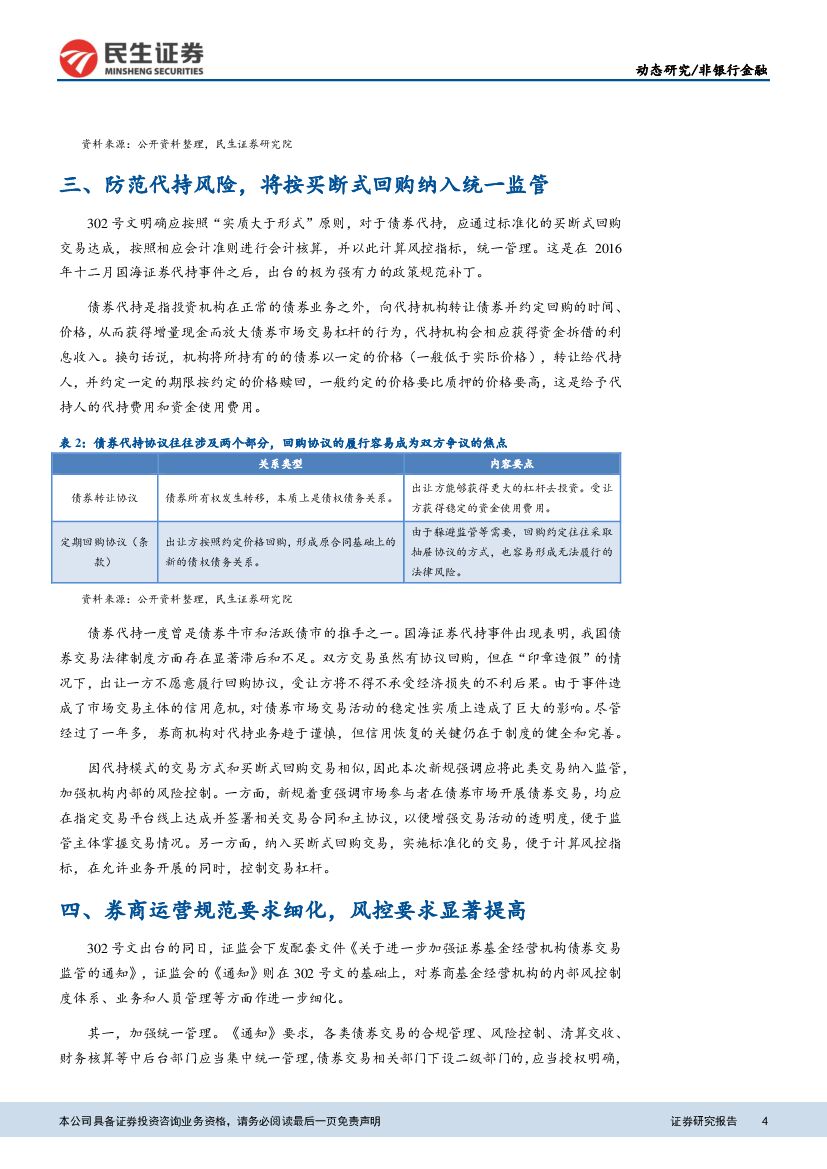 民生证券:非银行金融:关于302号文的规范性要求评述:债券代持将纳入监管,券商细则提升风控要求.pdf