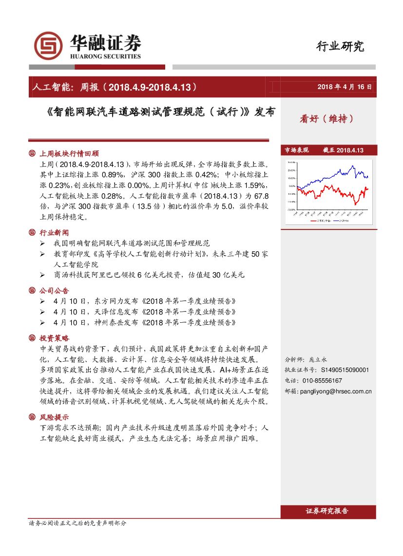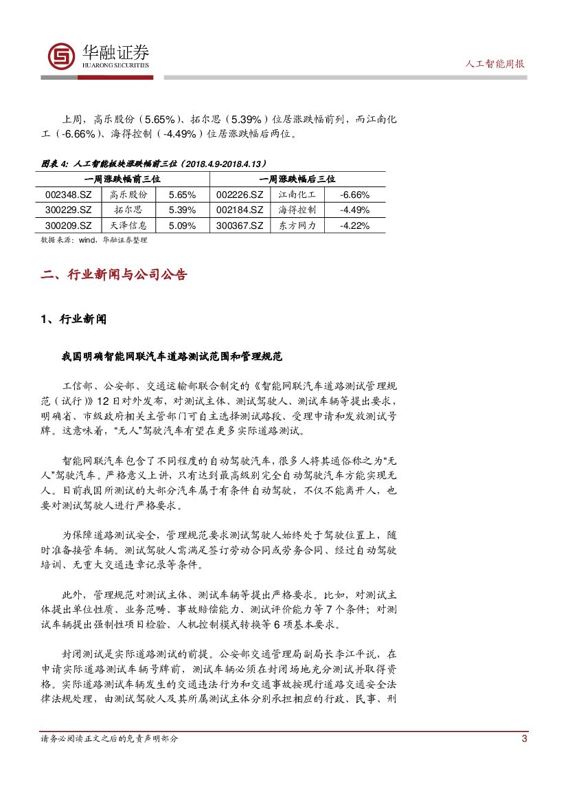 华融证券:人工智能:周报-《智能网联汽车道路测试管理规范(试行)》发布.pdf