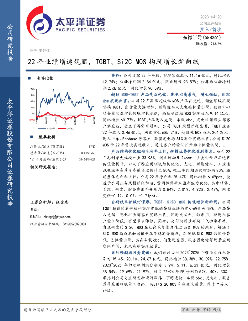 太平洋证券:东微半导(688261)-22年业绩增速靓丽,TGBT、Si2C MOS构筑增长新曲线.pdf