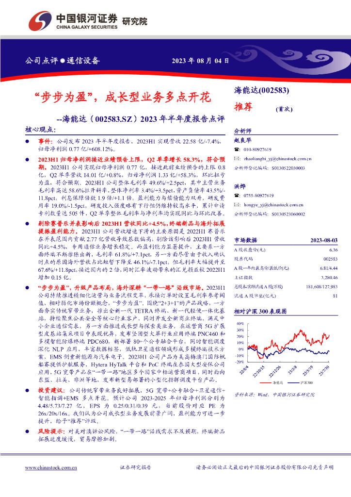 中国银河:海能达(002583)-2023年半年度报告点评:“步步为盈”,成长型业务多点开花.pdf