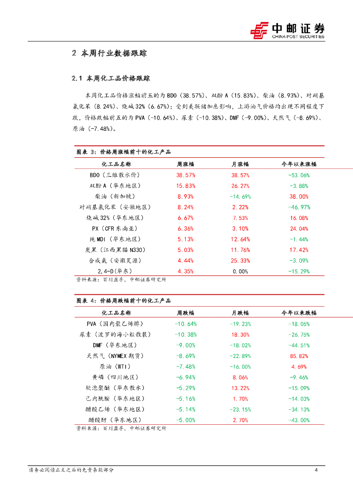 中邮证券:化工新材料行业周报:本周BDO、双酚A价格涨幅居前,上游油气价格受美联储加息影响下跌.pdf