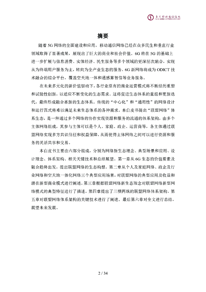 未来移动通信论坛:2024年10.0F-面向6G的联盟网络体系架构白皮书.pdf