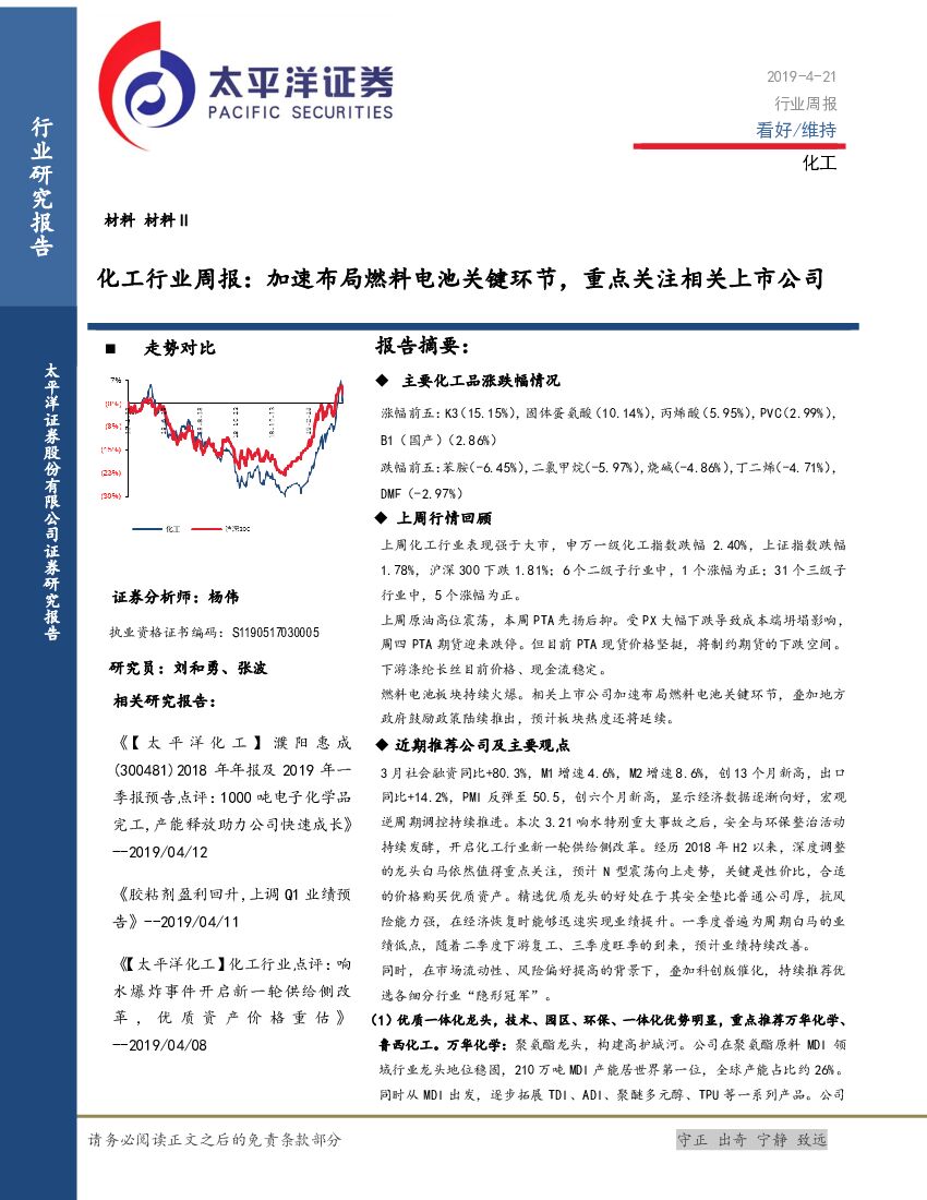 太平洋证券:化工行业周报:加速布局燃料电池关键环节,重点关注相关上市公司.pdf