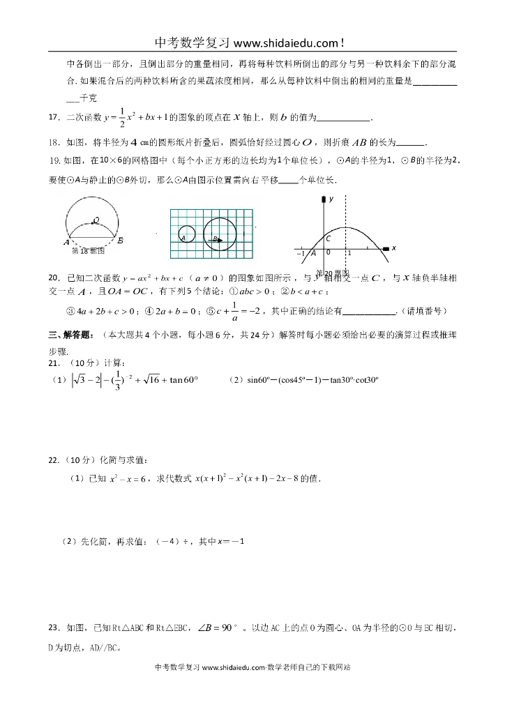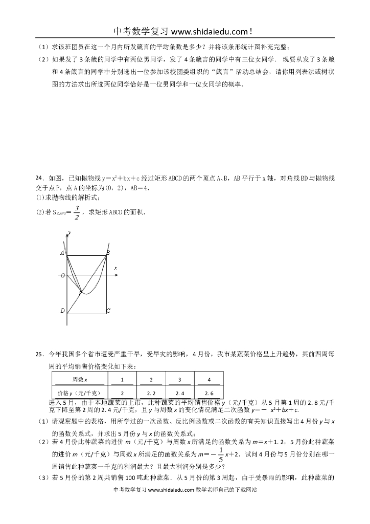 重庆市中考数学试题含答案.doc
