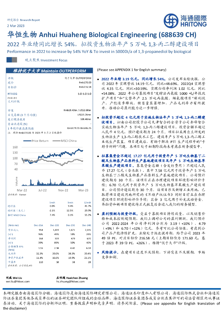 海通国际:华恒生物(688639)-2022年业绩同比增长54%,拟投资生物法年产5万吨1,3-丙二醇建设项目.pdf