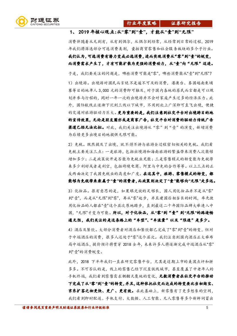 财通证券:零售社服行业2019年度策略报告:从“零”到“壹”,才能从“壹”到“无限”.pdf