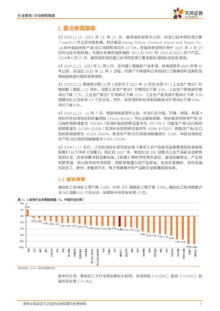 天风证券:基础化工行业研究周报:美国作出香兰素反补贴初裁,叶酸、硫磺价格上涨.pdf