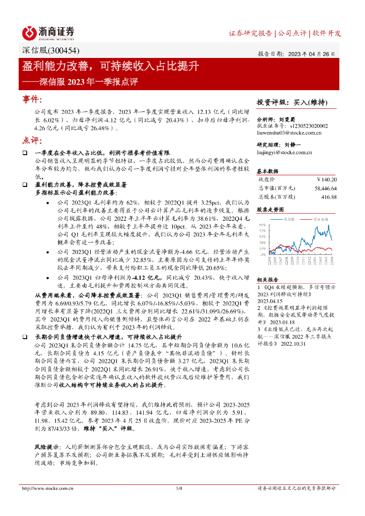 浙商证券:深信服2023年一季报点评:盈利能力改善,可持续收入占比提升.pdf