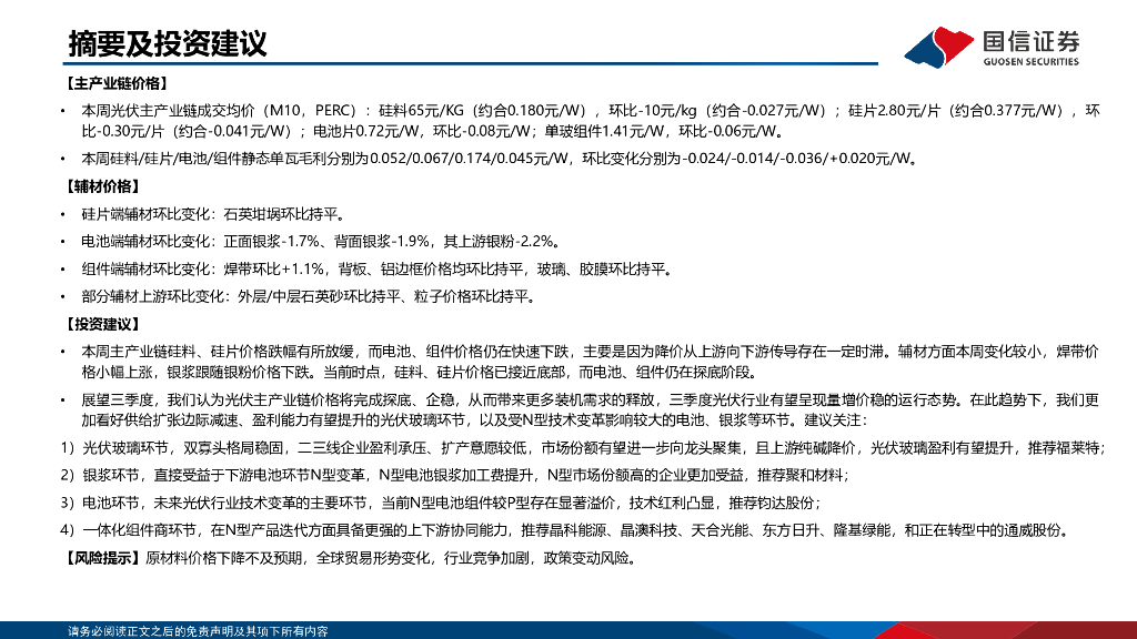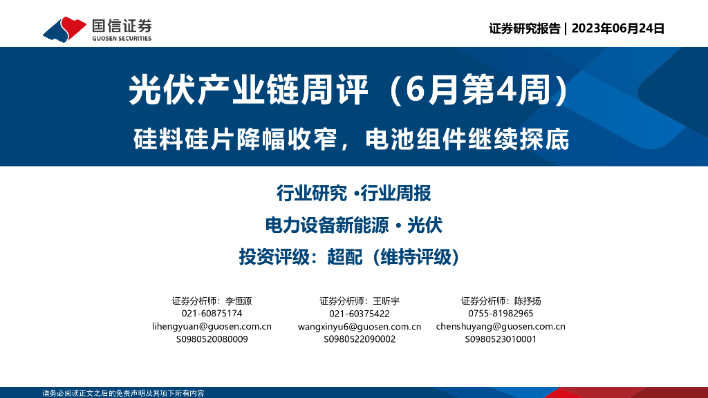 国信证券:光伏产业链周评(6月第4周):硅料硅片降幅收窄,电池组件继续探底.pdf