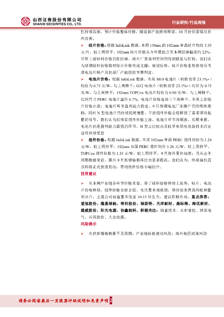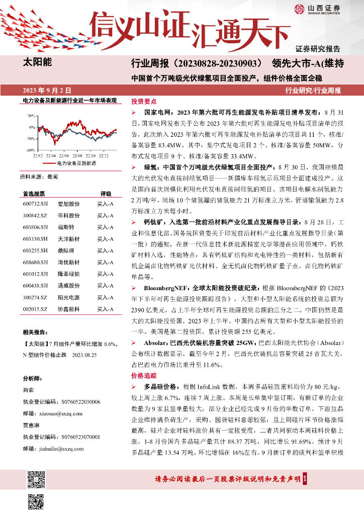 山西证券:太阳能行业周报:中国首个万吨级光伏绿氢项目全面投产,组件价格全面企稳.pdf