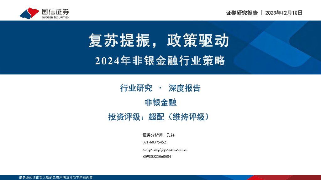 国信证券:2024年非银金融行业策略:复苏提振,政策驱动.pdf