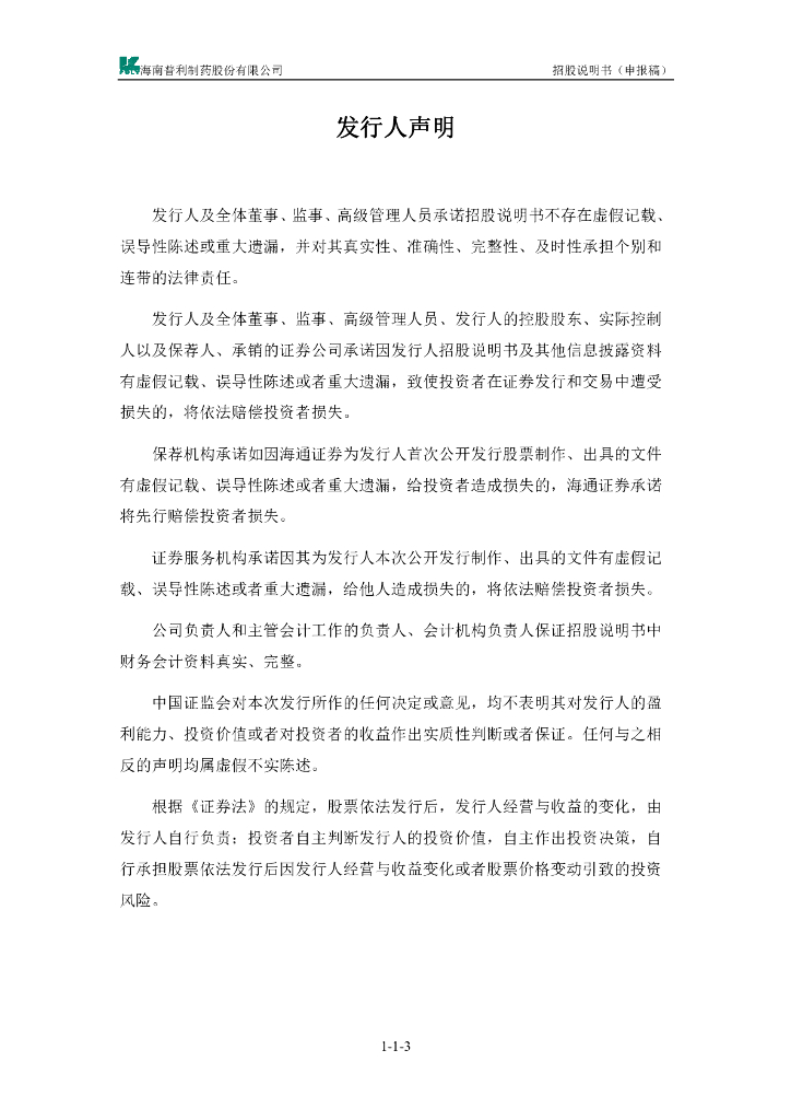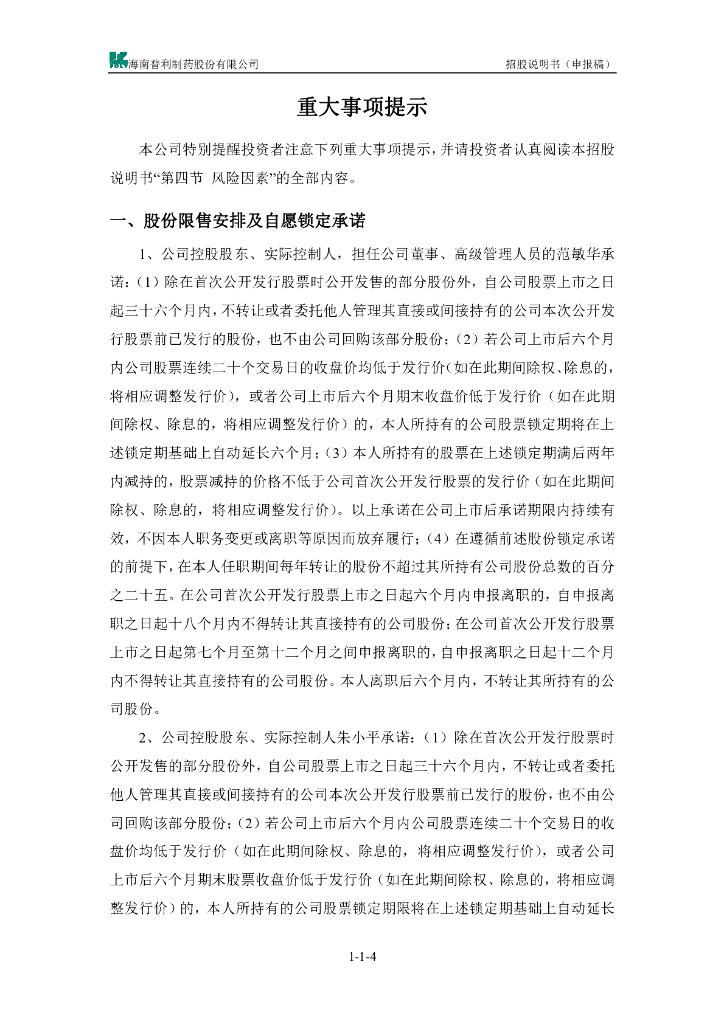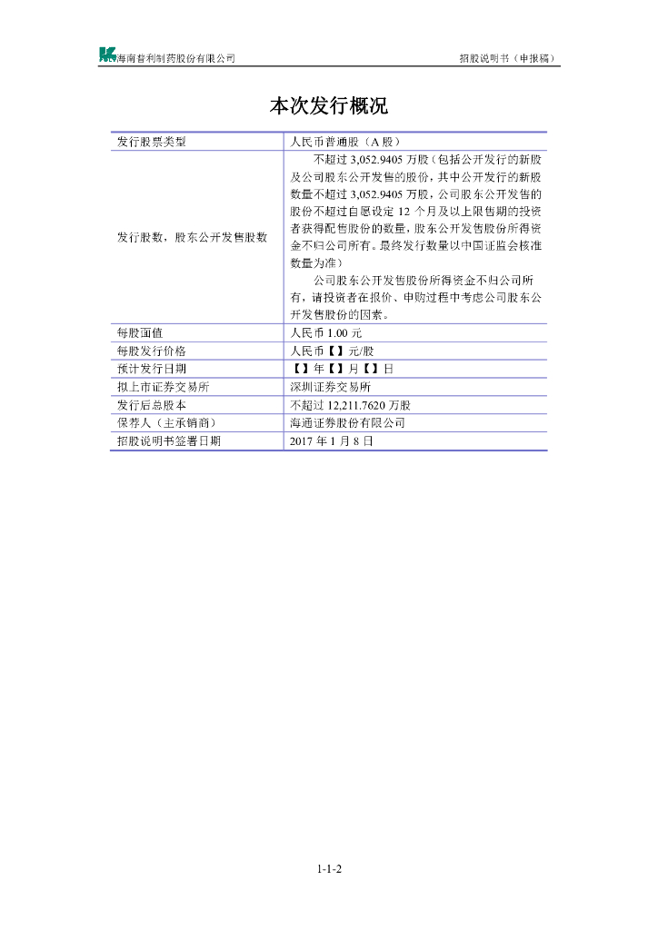 海南普利制药股份有限公司深交所创业板IPO上市招股说明书.pdf