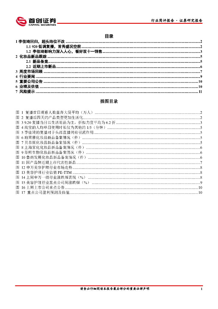 首创证券:美容护理行业简评报告:美妆周报:超头回归再起风云,线上双十一蓄势待发.pdf