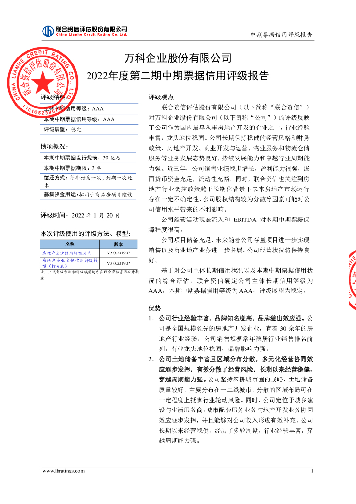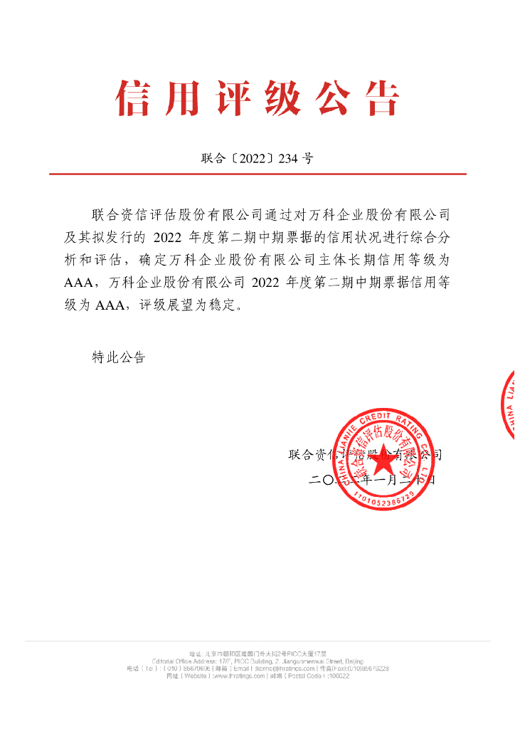 联合资信:万科企业股份有限公司2022年度第二期中期票据信用评级报告.pdf