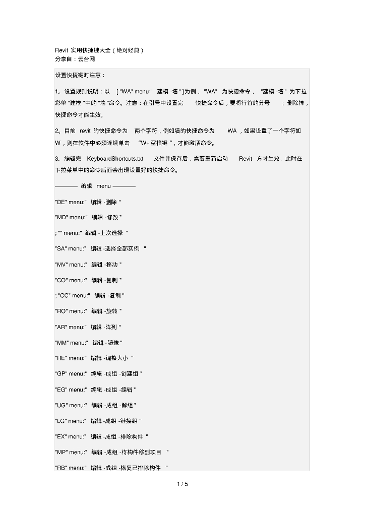 Revit实用快捷键汇总(绝对经典).pdf
