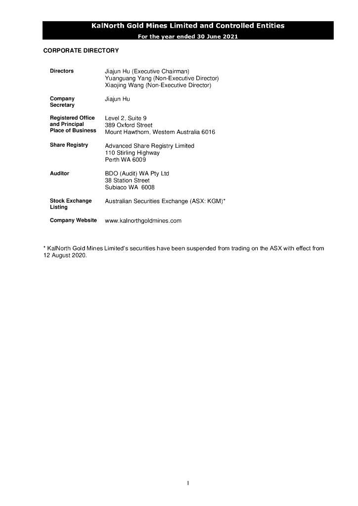 KalNorth Gold Mines Limited(KGM)2021财年年度报告(英文版).pdf