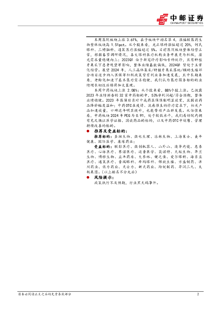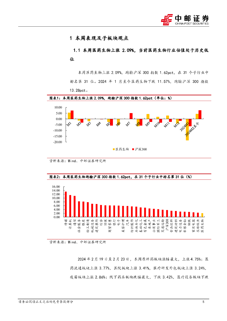 中邮证券:医药生物行业报告:节后首周小幅反弹,估值处于历史低位,建议优先配置业绩高确定性标的.pdf