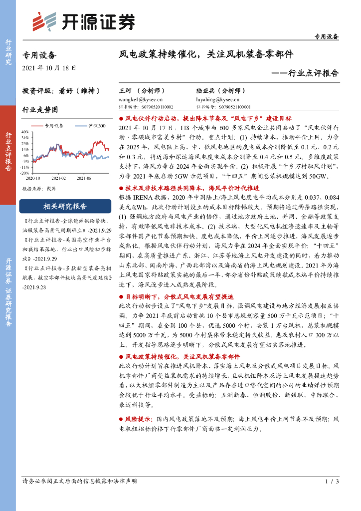 开源证券:专用设备行业点评报告:风电政策持续催化,关注风机装备零部件.pdf