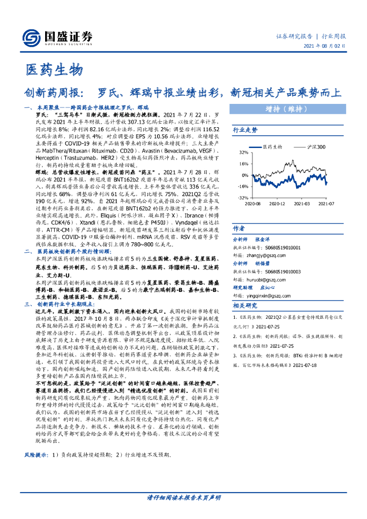 国盛证券:医药生物-创新药周报:罗氏、辉瑞中报业绩出彩,新冠相关产品乘势而上.pdf