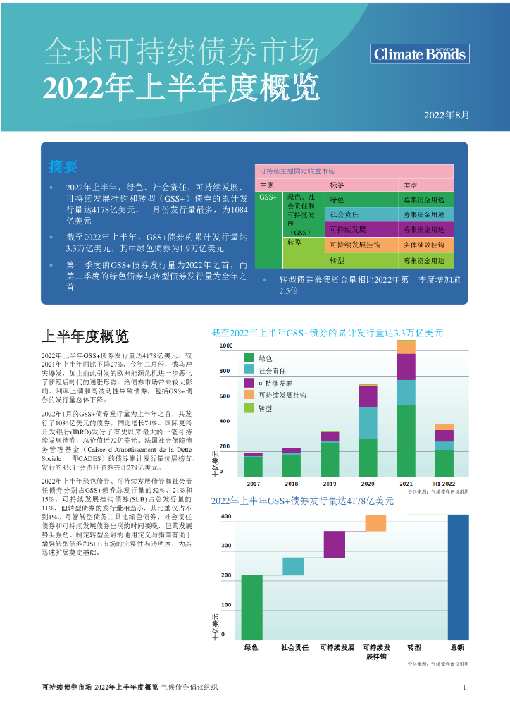 气候债券倡议组织:2022年上半年全球可持续债务市场进展报告.pdf
