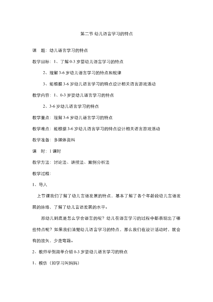 《幼儿认知与学习》电子教案-幼儿语言学习的特点.pdf