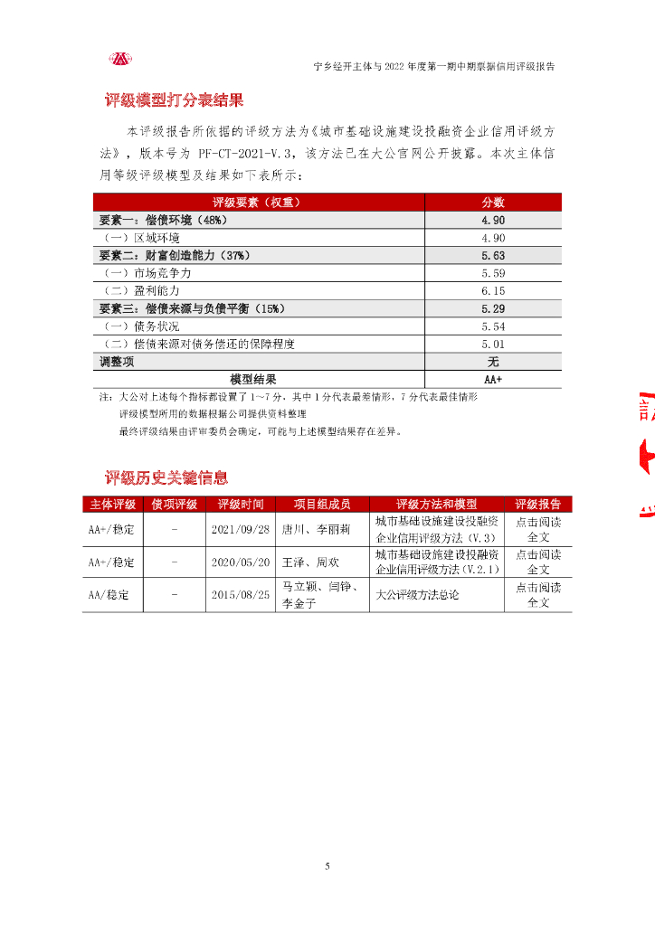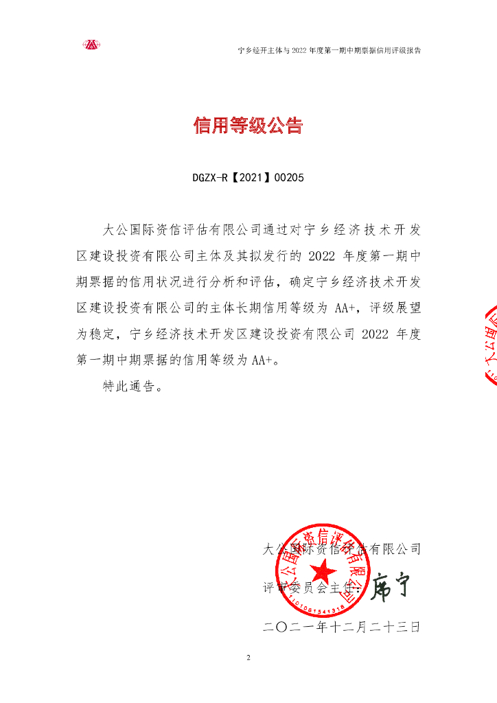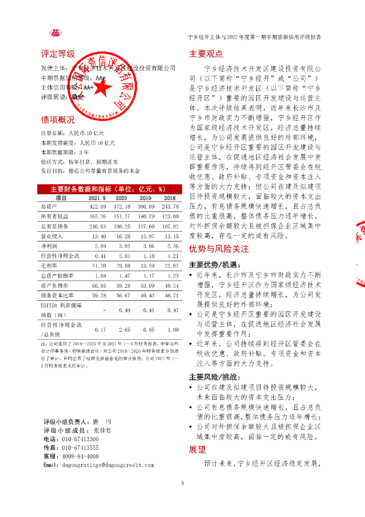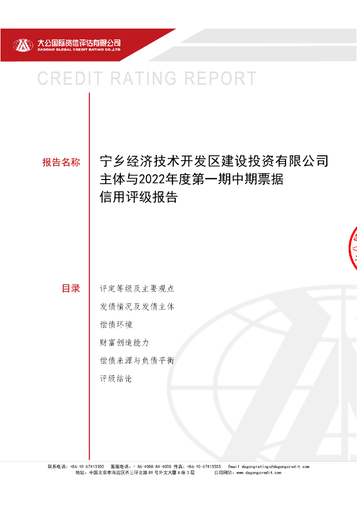 大公:宁乡经济技术开发区建设投资有限公司主体与2022第一期中期票据信用评级报告.pdf