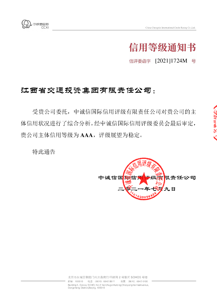 中诚信:江西省交通投资集团有限责任公司2021年度信用评级报告.pdf