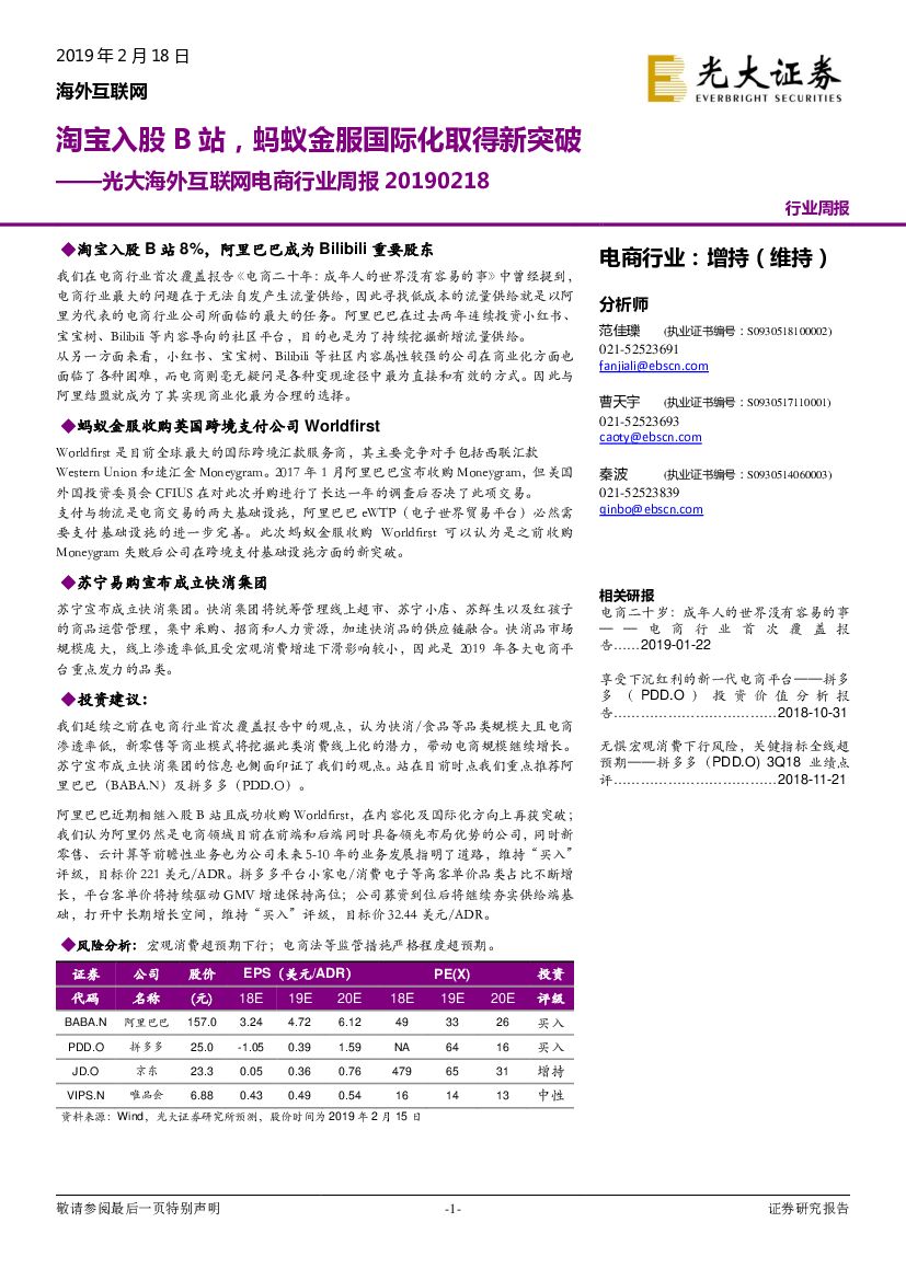 光大证券:光大海外互联网电商行业周报:淘宝入股B站,蚂蚁金服国际化取得新突破.pdf