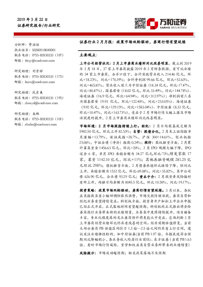 万和证券:证券行业2月月报:政策市场双轮驱动,券商行情有望延续.pdf