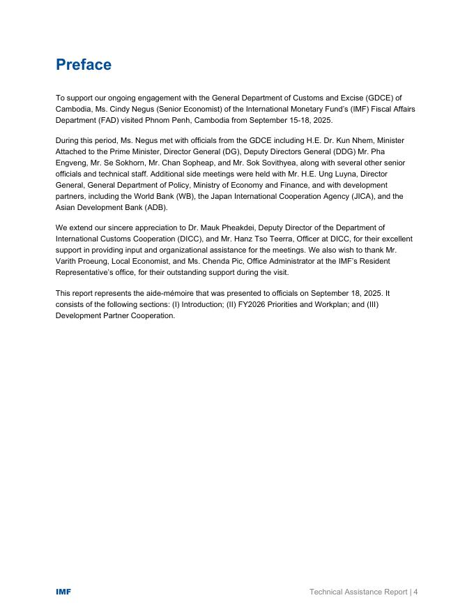 国际货币基金组织:柬埔寨海关总署2026财年工作计划范围内的技术援助报告(英文版).pdf