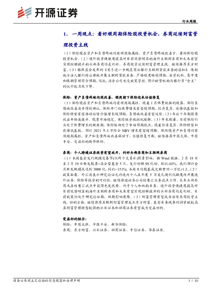 开源证券:非银金融行业周报:看好顺周期保险机会,跨境投资放开利好头部券商.pdf