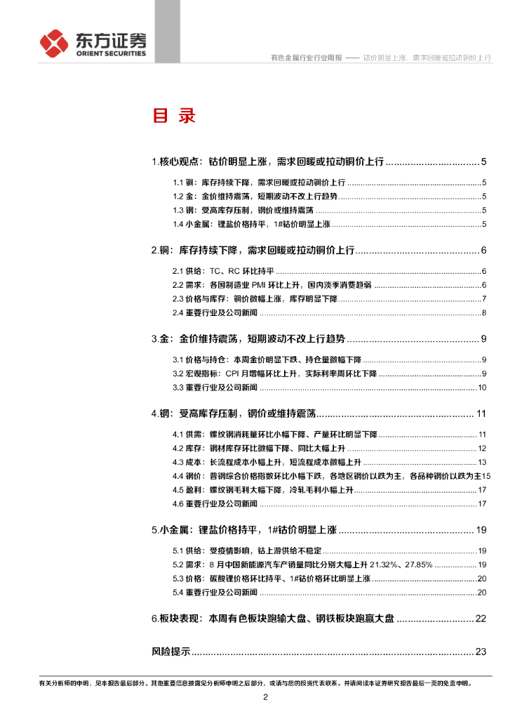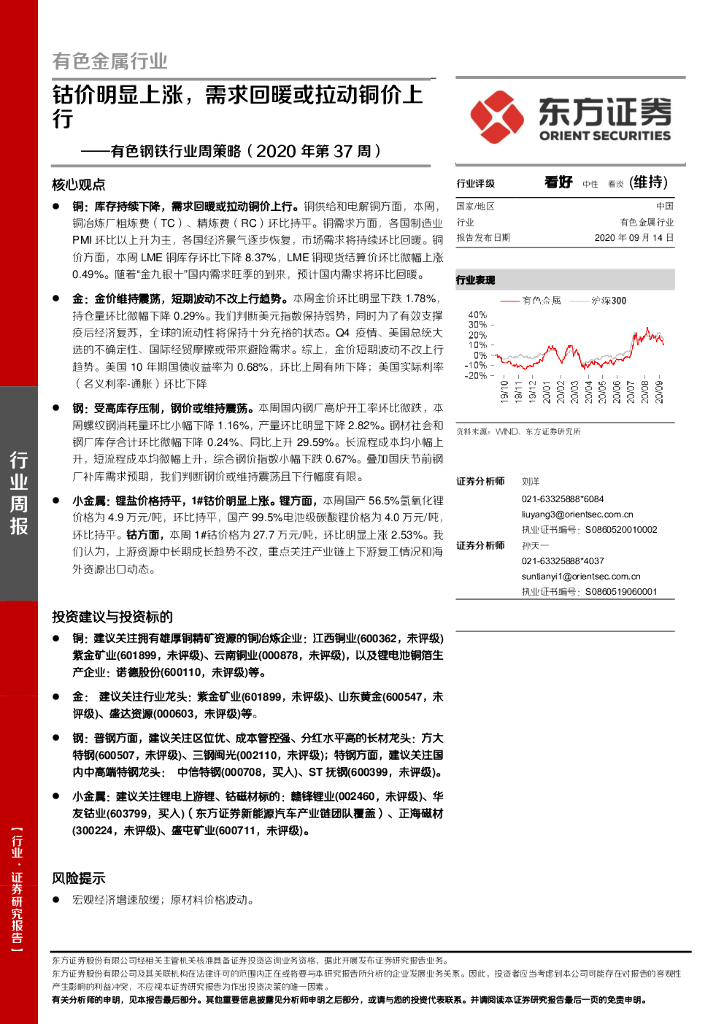 东方证券:有色钢铁行业周策略(2020年第37周):钴价明显上涨,需求回暖或拉动铜价上行.pdf
