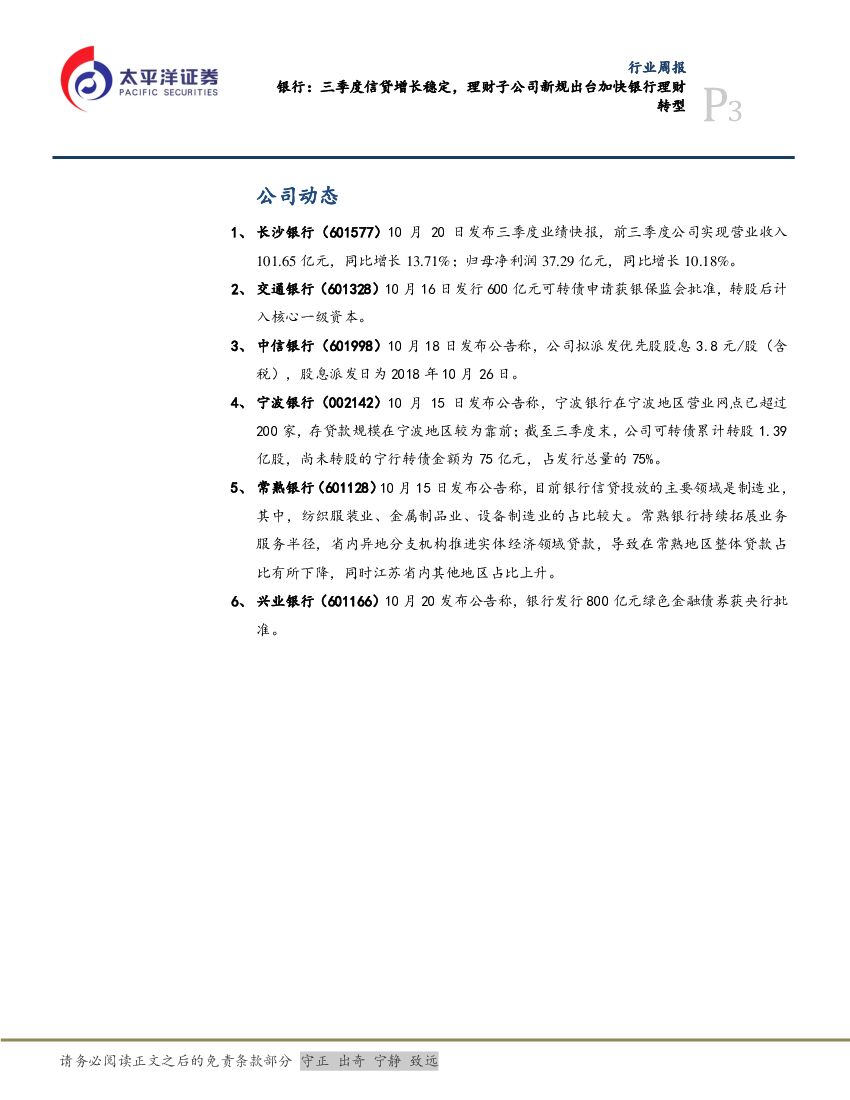 太平洋证券:银行:三季度信贷增长稳定,理财子公司新规出台加快银行理财转型.pdf
