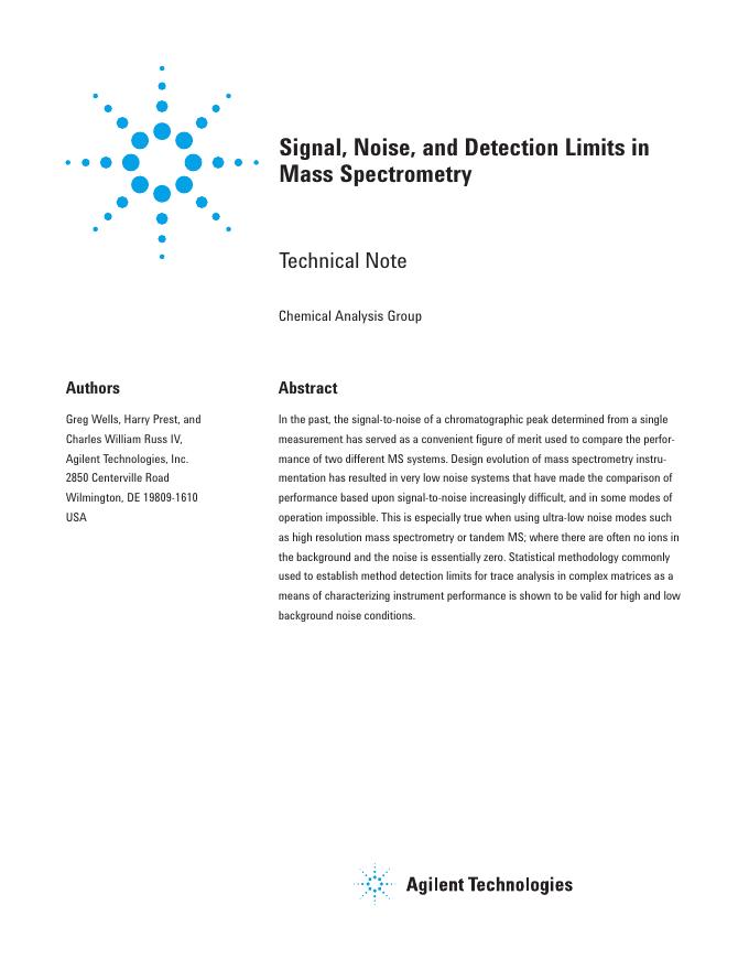 Agilent Technologies Signal,Noise, and Detection Limits in Mass Spectrometry 技术手册.pdf