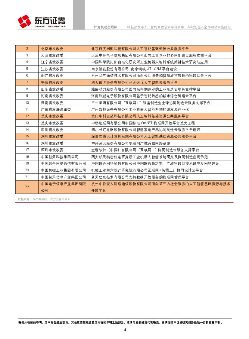 东方证券:计算机行业动态跟踪:科技部发布人工智能开放创新平台名单,AI规划进入全面启动实施阶段.pdf